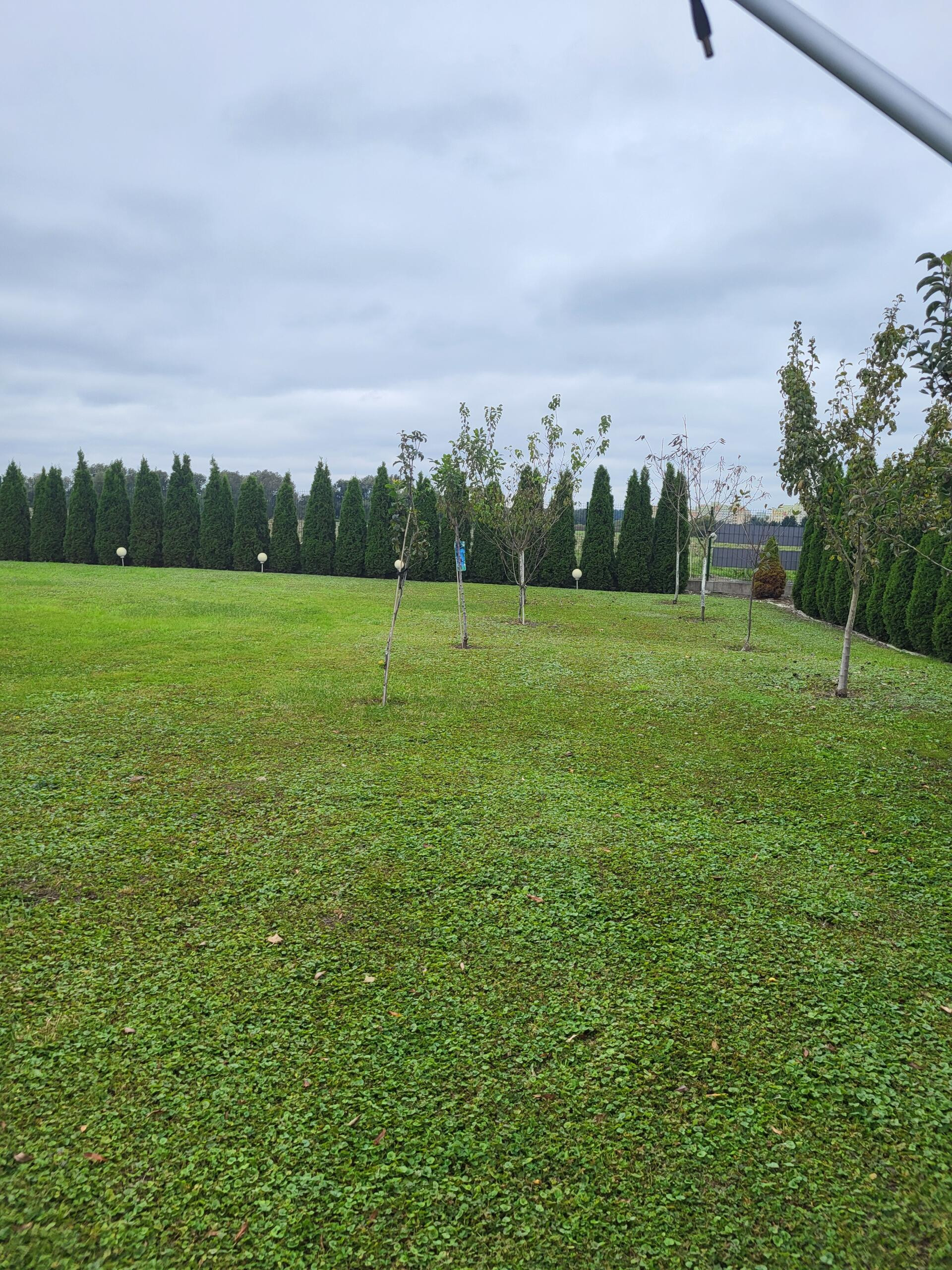 Nasadzenia: 61 sztuk tui, hortensje, rododendrony oraz drzewa owocowe (śliwa, grusza, czereśnie, wiśnie, morela)